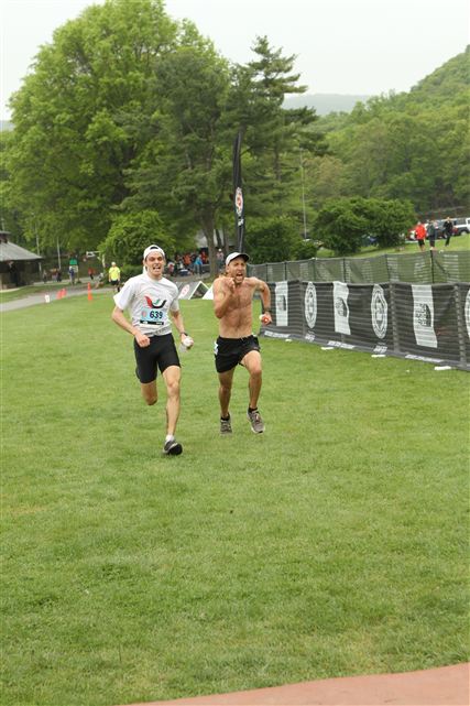 Мы держим приличный темп на грязных и скользких тропах, и я чувствую, что наша скорость в первой половине гонки была слишком высока для меня, чтобы продолжать в том же духе до конца. Я решаю отпустить Чарли примерно на 30-м км, и несколько минут спустя, к моему удивлению, меня настигают и обгоняют 2 бегуна. В течении нескольких минут мое настроение сменилось с победного на довольно печальное, ибо финишировать 4-м после такого длительного лидерства было бы не очень приятно. Но в то же время я понимал, что мои преследователи стратегически меня переиграли: они могли держать наш темп, но терпеливо сидели у нас на хвосте, всего пару минут позади, и на протяжении всей гонки выжидали подходящий момент для атаки. После таких атак в конце гонки шансы вернуть свою позицию очень малы, и мне ничего не оставалось, как пытаться сохранить свой темп и надеяться, что крутые подъемы в конце маршрута «поломают» одного из лидеров. Так и случилось с Чарли. На одном из последних крутых склонов он окончательно выдохся, и я обогнал его примерно за 3 км до финиша. Что любопытно, лидеры финишировали плечо к плечу, почти фото-финиш! Не часто можно увидеть такой синхронный финал на сверх-марафонских забегах.