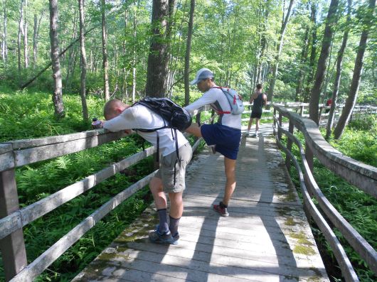 Настало время представить Майкла Олива (слева на фото). Он превратился в моего тренера в последние месяцы, и сделал этот забег возможным. Он — близкий друг Майкла Арнштейна (справа), они работают вместе над многими проектами в области бега в Нью-Йорке. Он также является координатором подобных сверх-марафонских тренировочных забегов в Нью-Йорке. Майкл был довольно быстрым марафонцем (2:34), но позже переключился на более длинные дистанции, и неплохо финишировал несколько известных сто-мильных гонок. В среде американских ультра-бегунов его прозвище —  «Майк Почтовый Ящик». Это имя приклеилось к нему после одной из его первых 100-мильных гонок, когда на 96-й миле у него начались галлюцинации (не редкое явление на таких дистанциях), и ему почудилось что обычный почтовый ящик у одного из домов — это кран с водой. Он открыл свою пустую бутылку и начал пытаться добыть воду из почтового ящика. На помощь подоспел пробегавший мимо спортсмен, и в итоге этот инцидент стал достоянием широкой публики. Известный писатель Кристофер МакДуггал (автор «Born to Run») любит рассказывать эту историю.