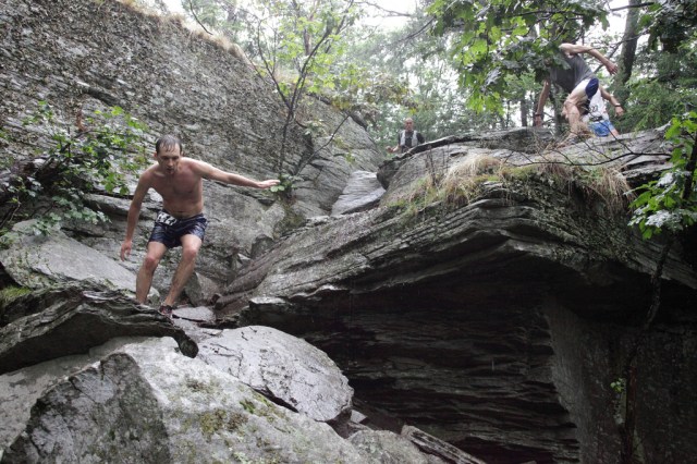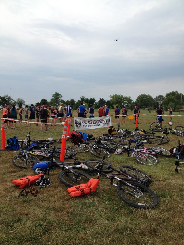 В отличии от меня, Майк не побоялся бежать через одну из самых горячих пустынь мира меньше чем за неделю до участия в Вермонт100 (где он победил в прошлом году). Удалось ли ему после этого финишировать в Вермонте? Читаем дальше… А тем временем в Нью-Йорке я принимал в гости своих родителей, набирался сил и совсем мало тренировался. Чтобы опять почувствовать соревновательный дух за неделю до гонки, я вместе со своим другом Дмитрием Григорьевым (серьезный парапланерист, альпинист и прочий экстремал) записался на необычный командный триатлон в Стэйтен Айленде. Командам из 2-х человек предстояло вместе пройти через следующее: 1.5 мили бег, 12 миль по лесным тропам на горном велосипеде, 1 миля бег по песчаному берегу океана с тем же горным велосипедом, 3 мили на каяке в океане и 3.7 миль бег к финишу. Сложнее всего оказалось не сбиться с маршрута.