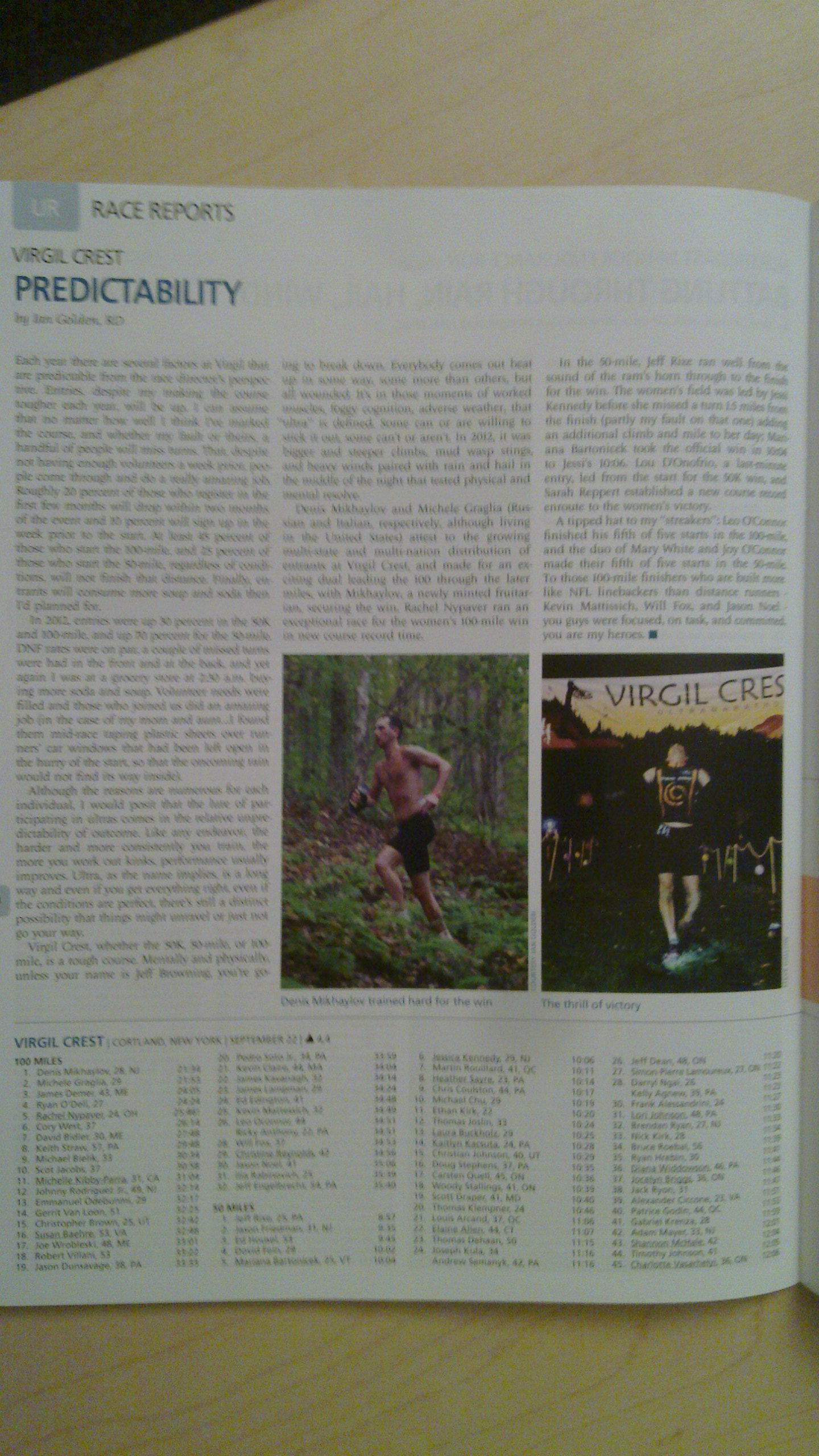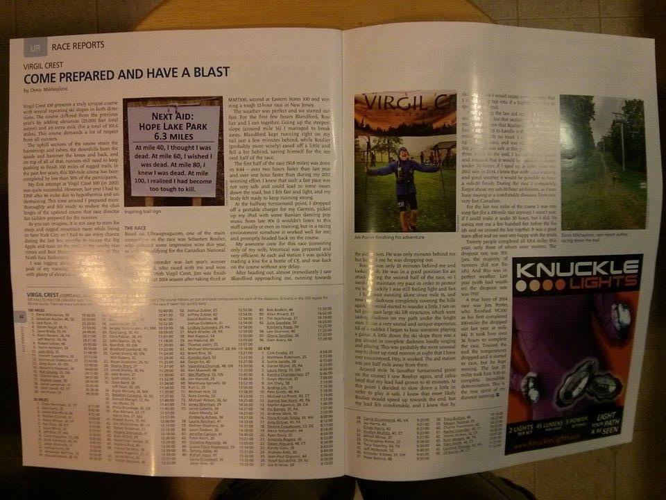 Моя статья о второй победе в гонке Virgil Crest 100 опубликована в декабрьском выпуске журнала «Ultrarunning», самом перстижном мировом издании о сверх-марафонском беге. ЗДЕСЬ текст статьи на английском